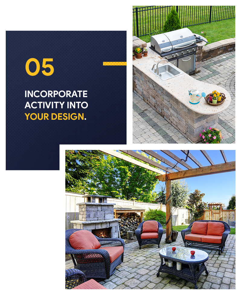 In creating your perfect outdoor oasis, it should not only be stylish, cozy, and comfortable, but also functional. It's where you would love to curl up at night with a good book and a glass of wine, or where your family will have dining al fresco on the summer days, so why not equip it with amenities that will encourage activity. In the Zillow research, fire features and outdoor kitchens are particularly popular options.
